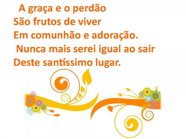 - A graça e o perdão São frutos de viver Em comunhão e adoração. Nunca mais serei igual ao sair Deste santíssimo lugar.