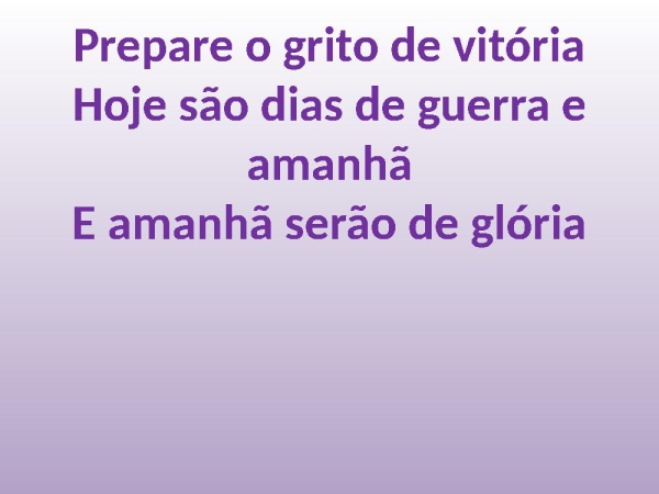 - Prepare o grito de vitóriaHoje são dias de guerra e amanhãE amanhã serão de glória