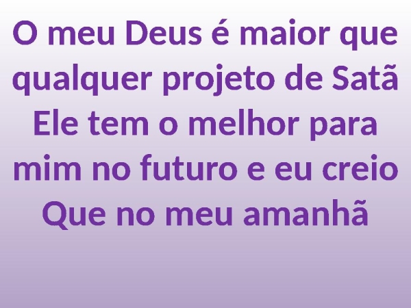 - O meu Deus é maior que qualquer projeto de SatãEle tem o melhor para mim no futuro e eu creioQue no meu amanhã