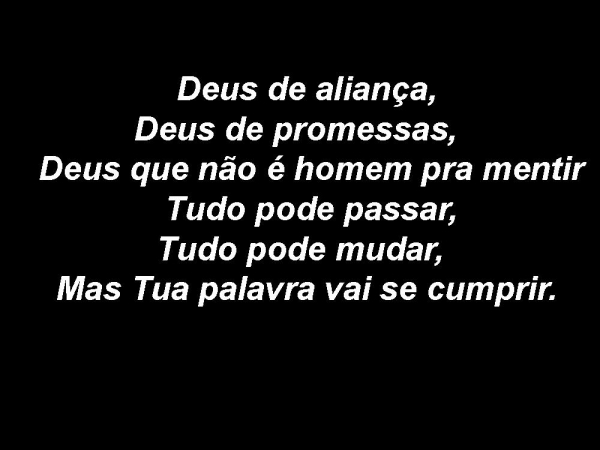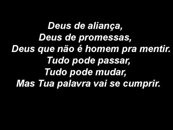 - Deus de aliança, Deus de promessas, Deus que não é homem pra mentir Tudo pode passar, Tudo pode mudar, Mas Tua palavra vai se cumprir.