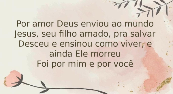- Por amor Deus enviou ao mundoJesus, seu filho amado, pra salvarDesceu e ensinou como viver, e ainda Ele morreuFoi por mim e por você