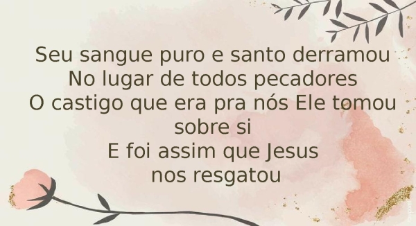 - Seu sangue puro e santo derramouNo lugar de todos pecadoresO castigo que era pra nós Ele tomou sobre siE foi assim que Jesus nos resgatou