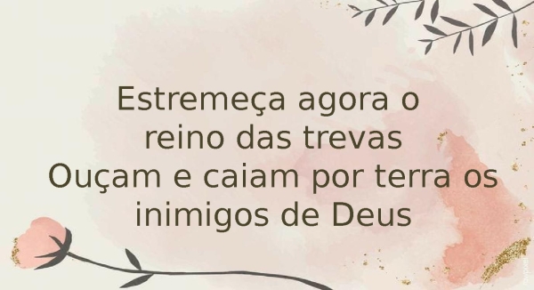 - Estremeça agora o reino das trevasOuçam e caiam por terra os inimigos de Deus