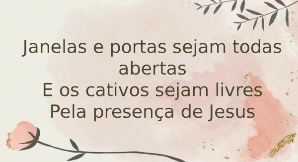 - Janelas e portas sejam todas abertasE os cativos sejam livresPela presença de Jesus