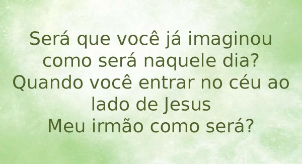 - Será que você já imaginou como será naquele dia?Quando você entrar no céu ao lado de JesusMeu irmão como será?