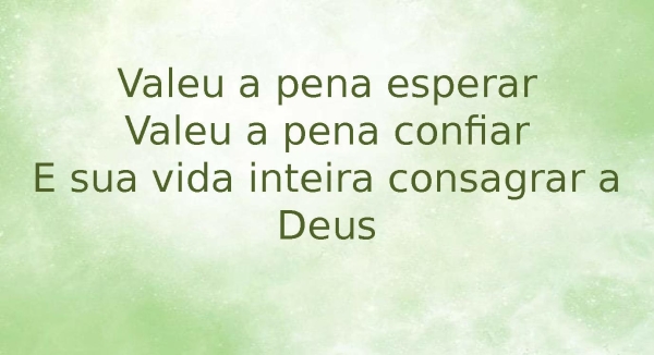 - Valeu a pena esperarValeu a pena confiarE sua vida inteira consagrar a Deus