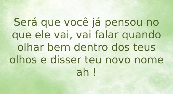 - Será que você já pensou no que ele vai, vai falar quando olhar bem dentro dos teus olhos e disser teu novo nome ah !