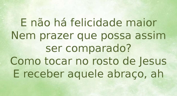 - E não há felicidade maiorNem prazer que possa assim ser comparado?Como tocar no rosto de JesusE receber aquele abraço, ah