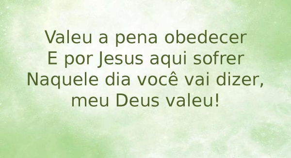 - Valeu a pena obedecerE por Jesus aqui sofrerNaquele dia você vai dizer, meu Deus valeu!