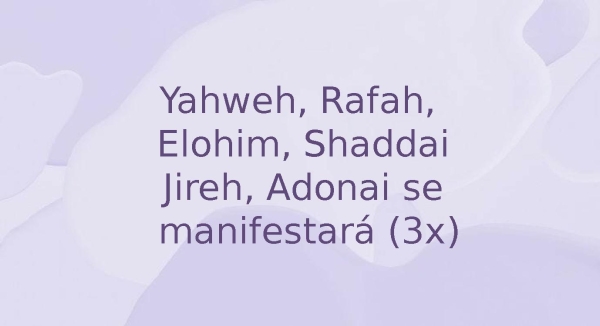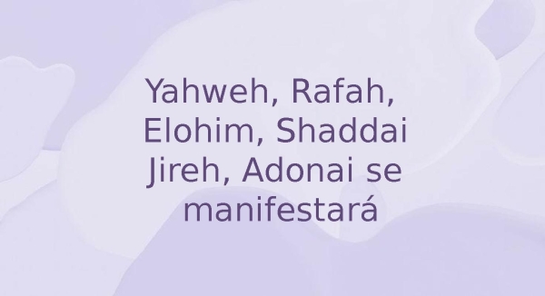 - Yahweh, Rafah, Elohim, ShaddaiJireh, Adonai se manifestará