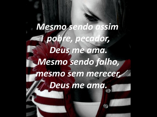 - Mesmo sendo assim pobre, pecador,Deus me ama.Mesmo sendo falho,mesmo sem merecer,Deus me ama.