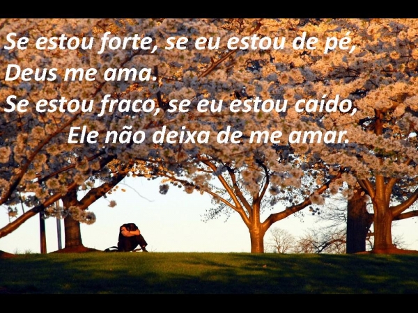 - Se estou forte, se eu estou de pé, Deus me ama. Se estou fraco, se eu estou caído, Ele não deixa de me amar.