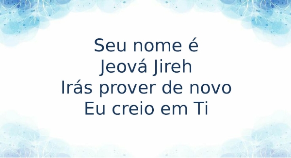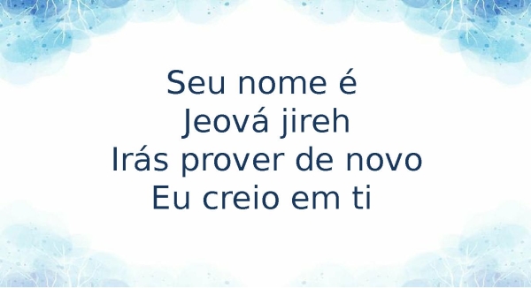 - Seu nome é Jeová jirehIrás prover de novoEu creio em ti