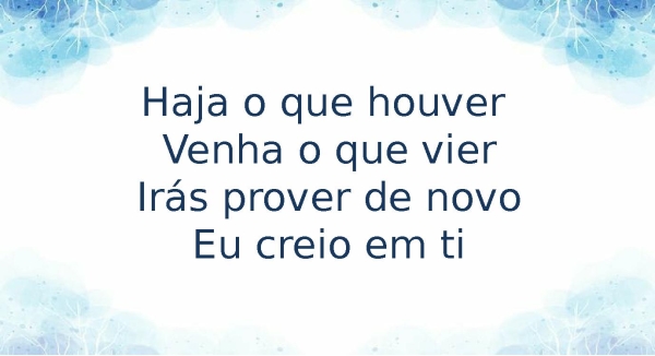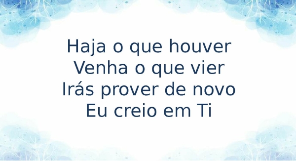 - Haja o que houver Venha o que vierIrás prover de novoEu creio em ti