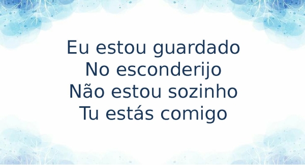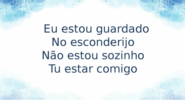 - Eu estou guardadoNo esconderijoNão estou sozinhoTu estás comigo