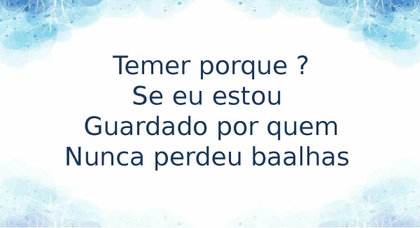 - Temer por quê?Se eu estouGuardado por quem nuncaPerdeu batalhas