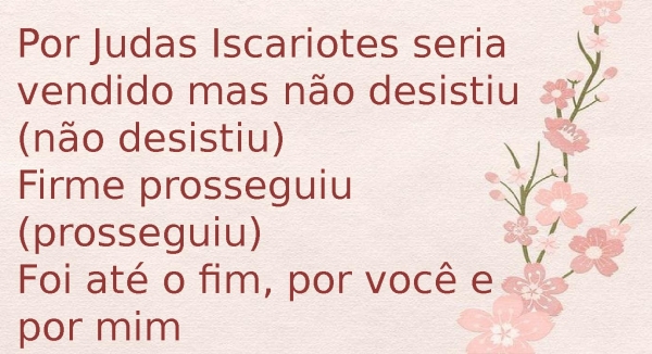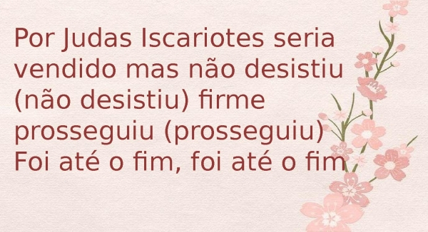 - Por Judas Iscariotes seria vendido mas não desistiu (não desistiu)Firme prosseguiu (prosseguiu)Foi até o fim, por você e por mim