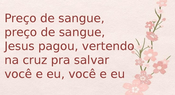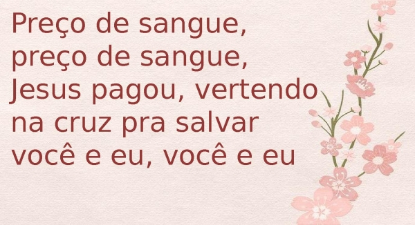 - Preço de sangue, preço de sangue, Jesus pagou, vertendo na cruz pra salvar você e eu, você e eu