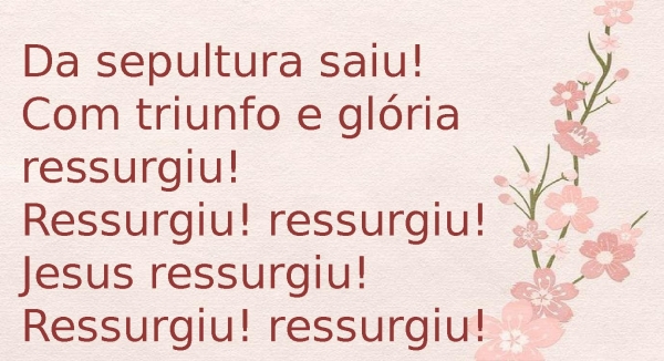 - Da sepultura saiu!Com triunfo e glória ressurgiu!Ressurgiu! ressurgiu!Jesus ressurgiu!Ressurgiu! ressurgiu!
