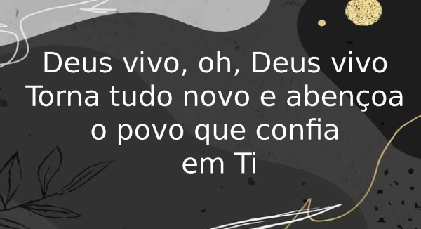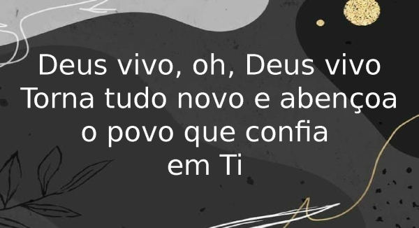 - Deus vivo, oh, Deus vivoTorna tudo novo e abençoa o povo que confia em Ti