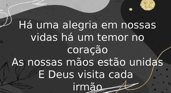 - Há uma alegria em nossas vidas há um temor no coraçãoAs nossas mãos estão unidasE Deus visita cada irmão