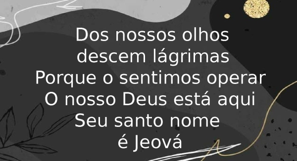 - Dos nossos olhos descem lágrimasPorque o sentimos operarO nosso Deus está aquiSeu santo nome é Jeová