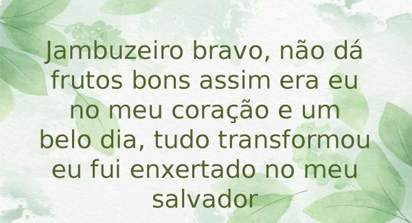 - Jambuzeiro bravo, não dá frutos bons assim era eu no meu coração e um belo dia, tudo transformou eu fui enxertado no meu salvador