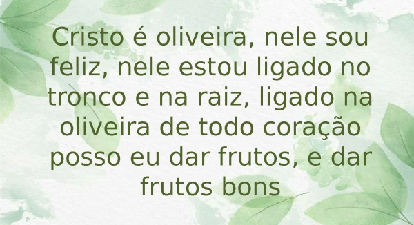 - Cristo é oliveira, nele sou feliz, nele estou ligado no tronco e na raiz, ligado na oliveira de todo coração posso eu dar frutos, e dar frutos bons
