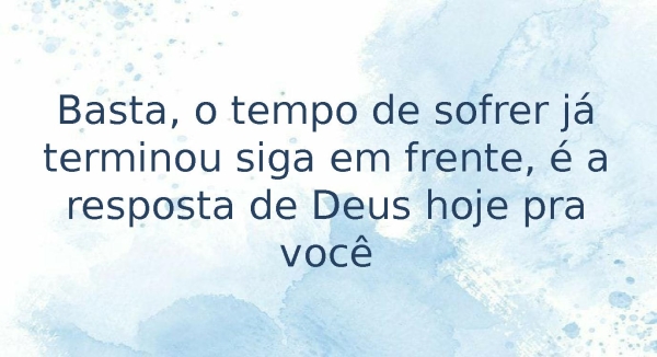 - Basta, o tempo de sofrer já terminou siga em frente, é a resposta de Deus hoje pra você