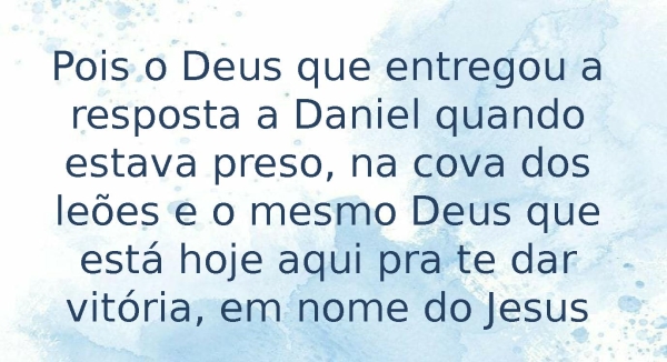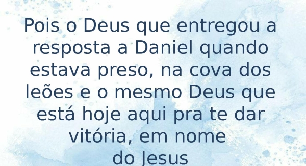 - Pois o Deus que entregou a resposta a Daniel quando estava preso, na cova dos leões e o mesmo Deus que está hoje aqui pra te dar vitória, em nome do Jesus