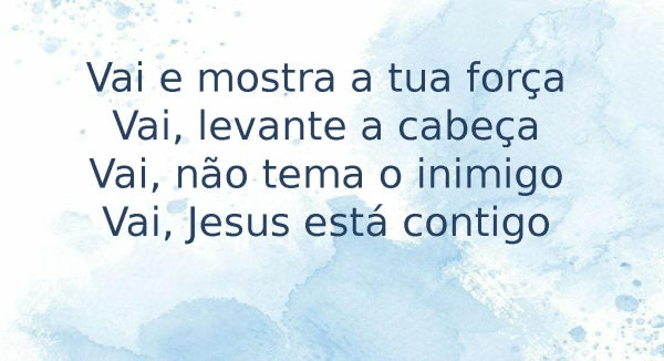 - Vai e mostra a tua forçaVai, levante a cabeçaVai, não tema o inimigoVai, Jesus está contigo