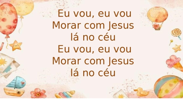 - Eu vou, eu vouMorar com Jesus lá no céu Eu vou, eu vouMorar com Jesus lá no céu