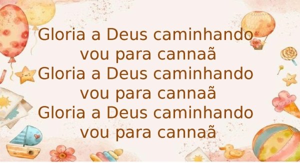 - Gloria a Deus caminhando vou para cannaãGloria a Deus caminhando vou para cannaãGloria a Deus caminhando vou para cannaã