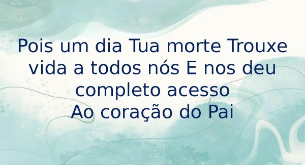 - Pois um dia Tua morte Trouxe vida a todos nós E nos deu completo acessoAo coração do Pai