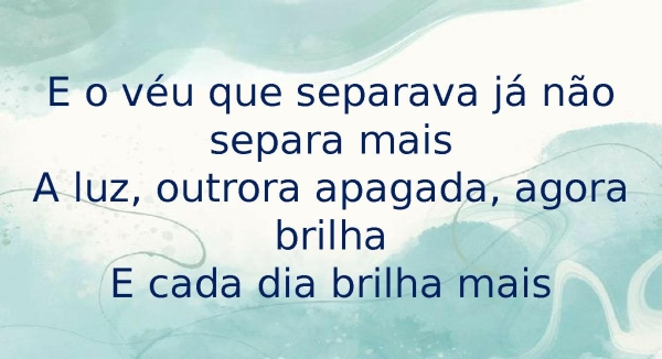 - E o véu que separava já não separa maisA luz, outrora apagada, agora brilhaE cada dia brilha mais