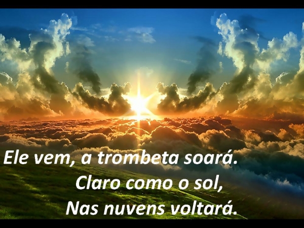 - Ele vem, a trombeta soará. Claro como o sol, Nas nuvens voltará.