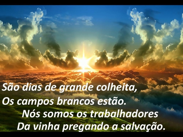 - São dias de grande colheita, Os campos brancos estão. Nós somos os trabalhadores Da vinha pregando a salvação.