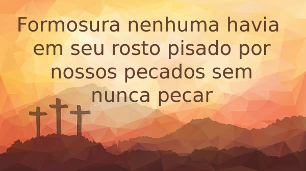 - Formosura nenhuma havia em seu rosto pisado por nossos pecados sem nunca pecar