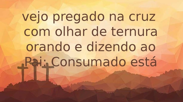 - vejo pregado na cruz com olhar de ternura orando e dizendo ao Pai: Consumado está