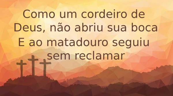 - Como um cordeiro de Deus, não abriu sua bocaE ao matadouro seguiu sem reclamar