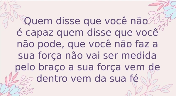 - Quem disse que você não é capaz quem disse que você não pode, que você não faz a sua força não vai ser medida pelo braço a sua força vem de dentro vem da sua fé