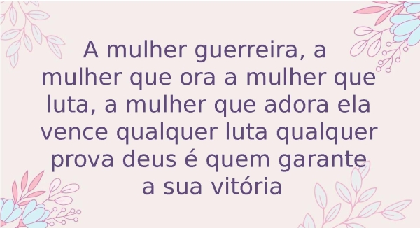 - A mulher guerreira, a mulher que ora a mulher que luta, a mulher que adora ela vence qualquer luta qualquer prova deus é quem garante a sua vitória