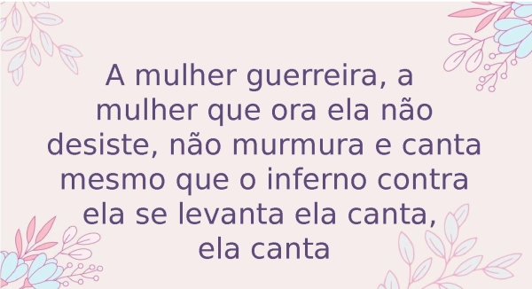 - A mulher guerreira, a mulher que ora ela não desiste, não murmura e canta mesmo que o inferno contra ela se levanta ela canta, ela canta