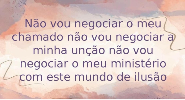 - Não vou negociar o meu chamado não vou negociar a minha unção não vou negociar o meu ministério com este mundo de ilusão