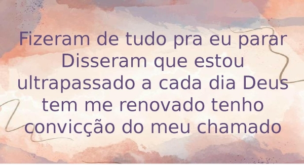 - Fizeram de tudo pra eu pararDisseram que estou ultrapassado a cada dia Deus tem me renovado tenho convicção do meu chamado