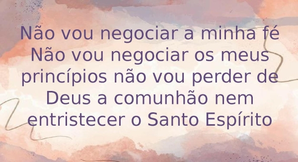 - Não vou negociar a minha féNão vou negociar os meus princípios não vou perder de Deus a comunhão nem entristecer o Santo Espírito