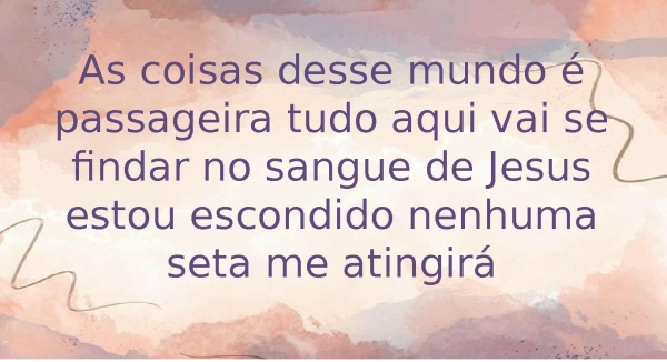 - As coisas desse mundo é passageira tudo aqui vai se findar no sangue de Jesus estou escondido nenhuma seta me atingirá