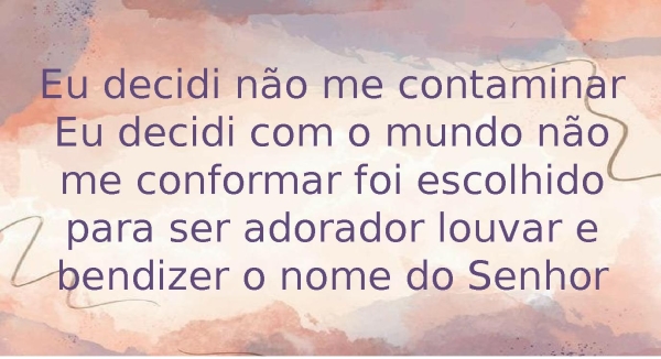 - Eu decidi não me contaminarEu decidi com o mundo não me conformar foi escolhido para ser adorador louvar e bendizer o nome do Senhor