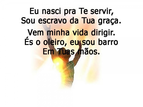 - Eu nasci pra Te servir,Sou escravo da Tua graça.Vem minha vida dirigir.És o oleiro, eu sou barro,Em Tuas mãos.