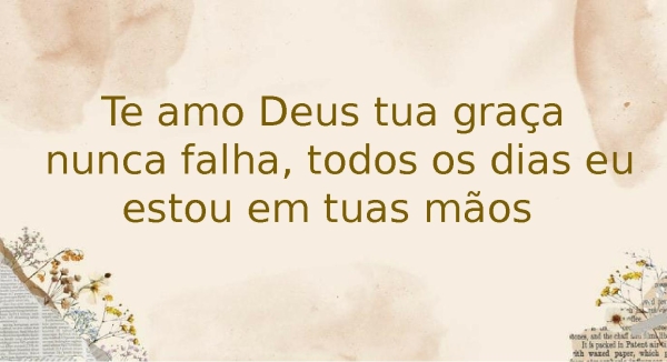 - Te amo Deus tua graça nunca falha, todos os dias eu estou em tuas mãos